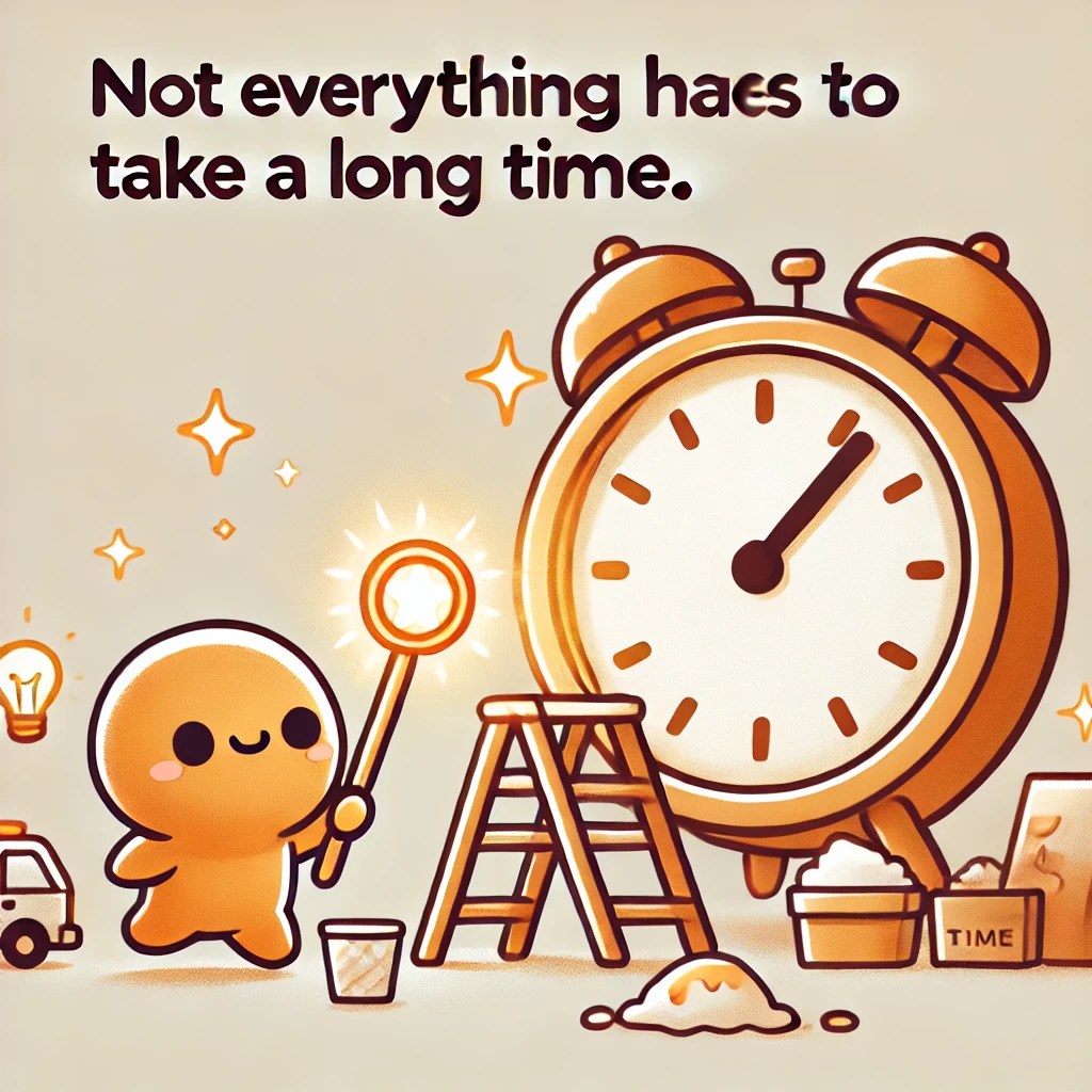 Another may be less intense but easy way to write same concept would be – Not everything has to take a long time. Always question timelines.
